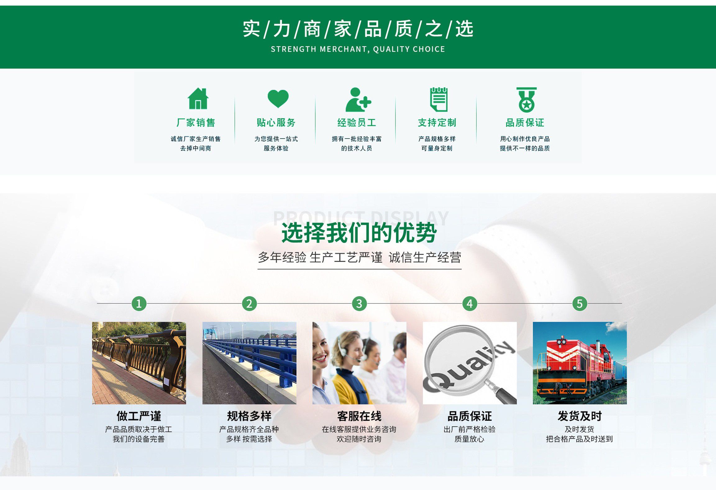 山東崇發(fā)金屬制品有限公司位于“江北水城“”之稱的聊城,地理位置優(yōu)越,交通方便。公司占地面積50000平方米,建有標(biāo)準(zhǔn)化廠房及辦公樓等配套設(shè)施,建筑面積30000平方米。 公司是一家設(shè)計(jì)、銷售、安裝為一體的護(hù)欄工程企業(yè),本公司主要生產(chǎn)各種燈光護(hù)欄,防撞護(hù)欄,橋梁護(hù)欄,鋁合金護(hù)欄,不銹鋼復(fù)合管護(hù)欄,河道護(hù)欄等。公司擁有先進(jìn)的全自動激光切割設(shè)備和機(jī)器人焊接設(shè)備,能夠保證護(hù)欄產(chǎn)品的精度和表面光潔度。 公司優(yōu)勢一、專業(yè)性強(qiáng)1、設(shè)計(jì)、提供和安裝各種護(hù)欄工程。擁有護(hù)欄設(shè)計(jì)、銷售與安裝為一體的完整體系。 2、應(yīng)用領(lǐng)域:防撞護(hù)欄、橋梁護(hù)欄、河道護(hù)欄、燈光護(hù)欄、道路護(hù)欄等。 二、價格優(yōu)勢公司擁有獨(dú)立的生產(chǎn)車間,無論管材還是立柱鋼板及表面處理都可在本公司內(nèi)自行加工完成,減少中間環(huán)節(jié),給客戶提供合理的價格,優(yōu)質(zhì)的產(chǎn)品。 我們將始終堅(jiān)持“開拓國際市場,信譽(yù)就是效益”的經(jīng)營理念,憑借一批思想統(tǒng)一、團(tuán)結(jié)拼搏、業(yè)務(wù)熟練、對客戶高度負(fù)責(zé)的團(tuán)隊(duì)力量,與廣大客戶攜手共進(jìn),合作雙贏,一起迎接明天的輝煌!...